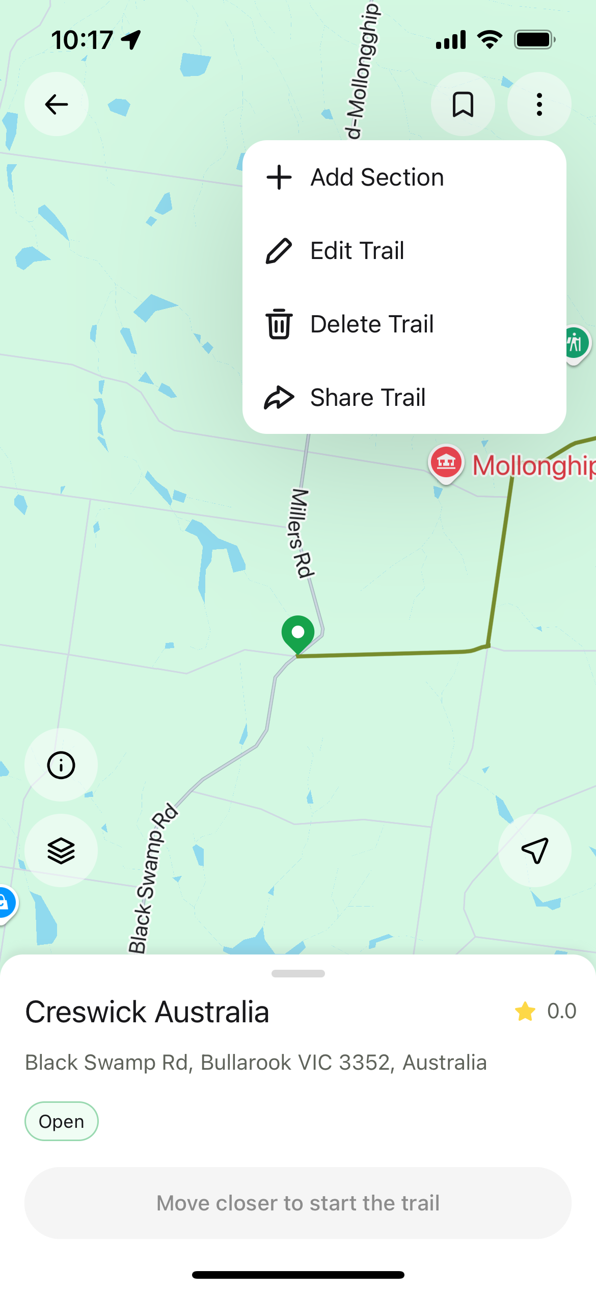 Encontre a trilha que deseja atualizar e toque no **menu de três pontos** no canto superior direito.