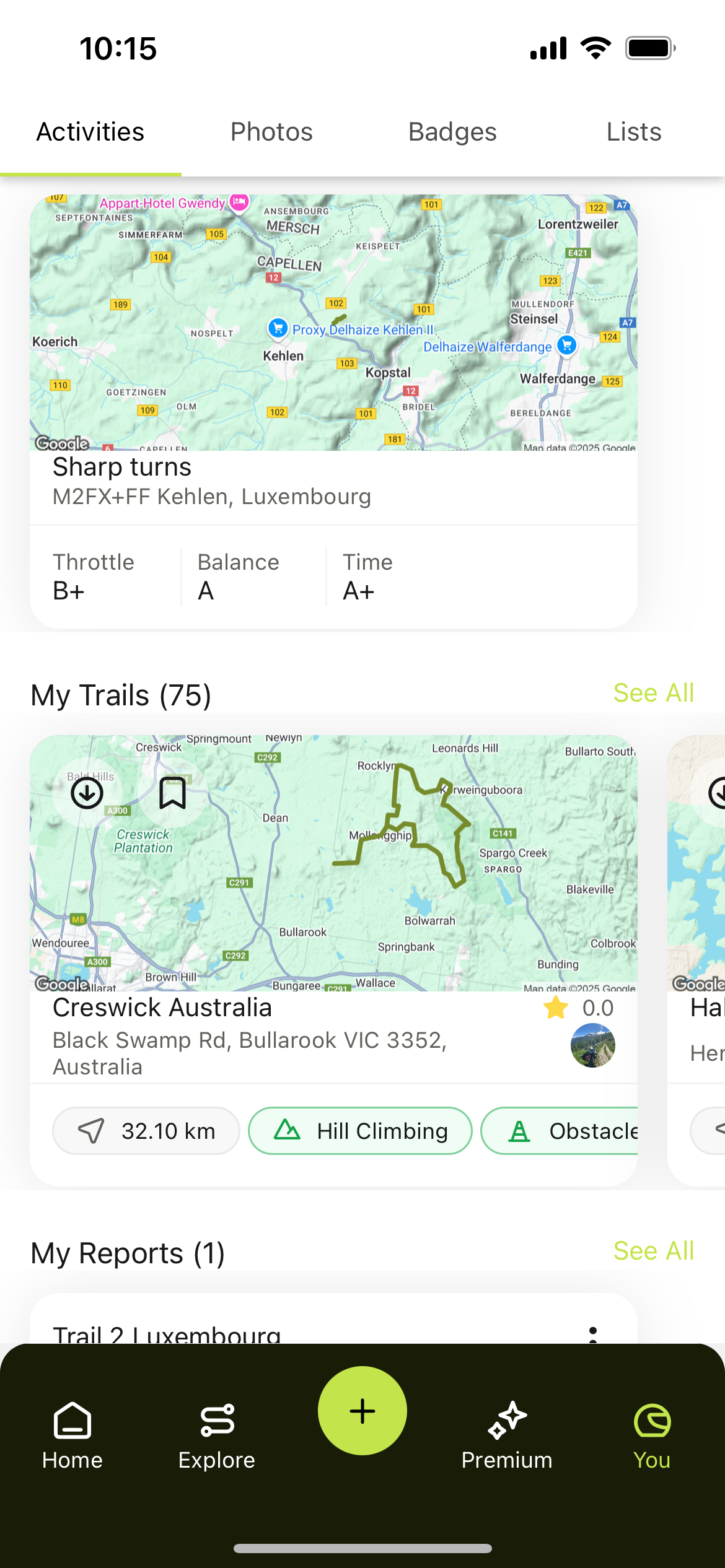 Navegue até a aba **"Você"** e toque em “Meus Trilhos.”