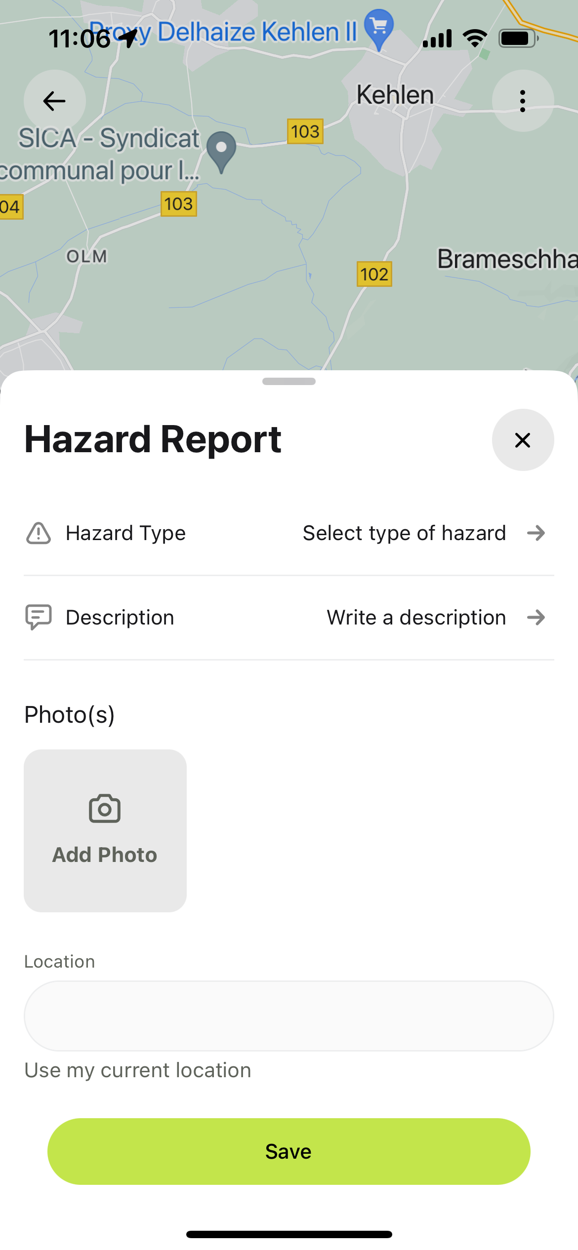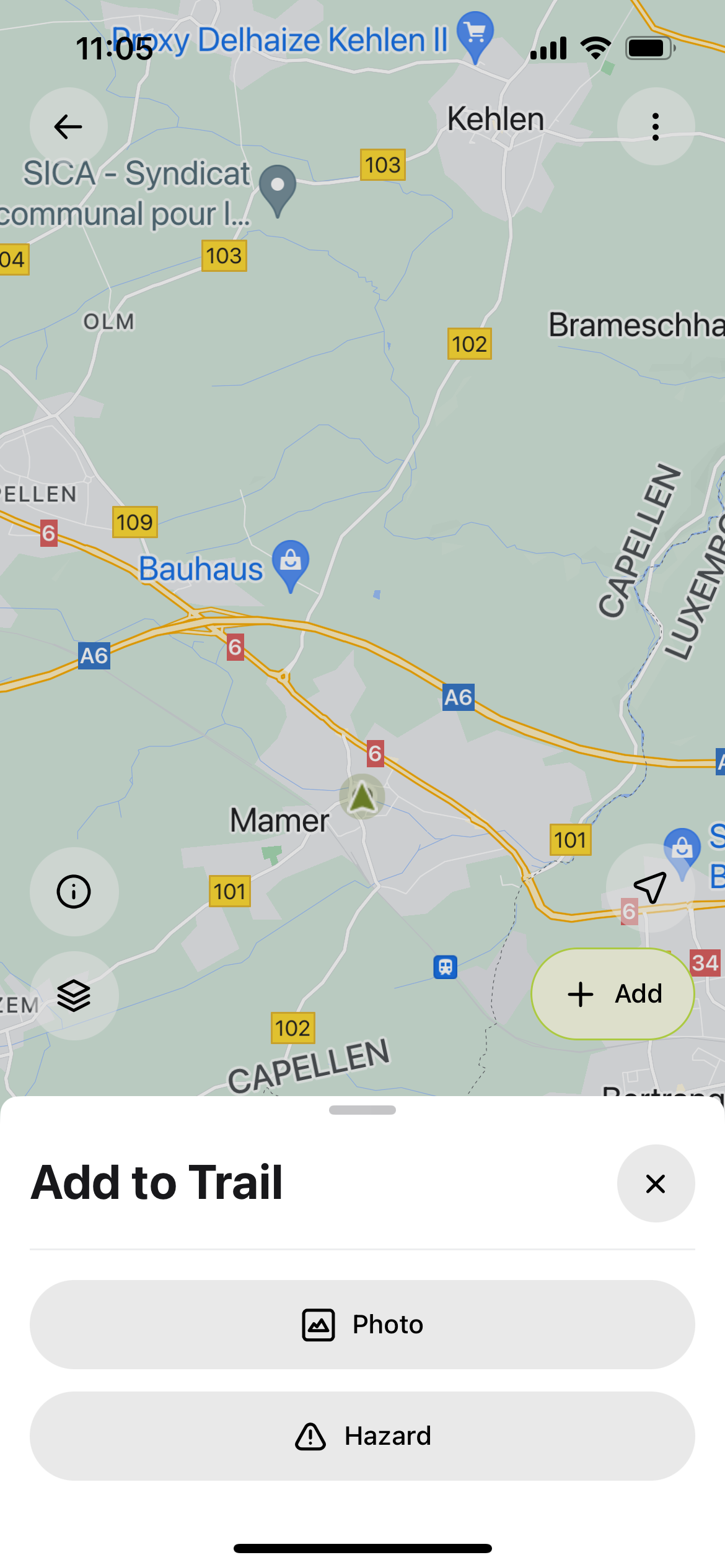 5. Vê algum perigo, como árvores caídas, ou quer compartilhar as fotos da sua viagem? Basta clicar no botão **Adicionar** para postar suas atual