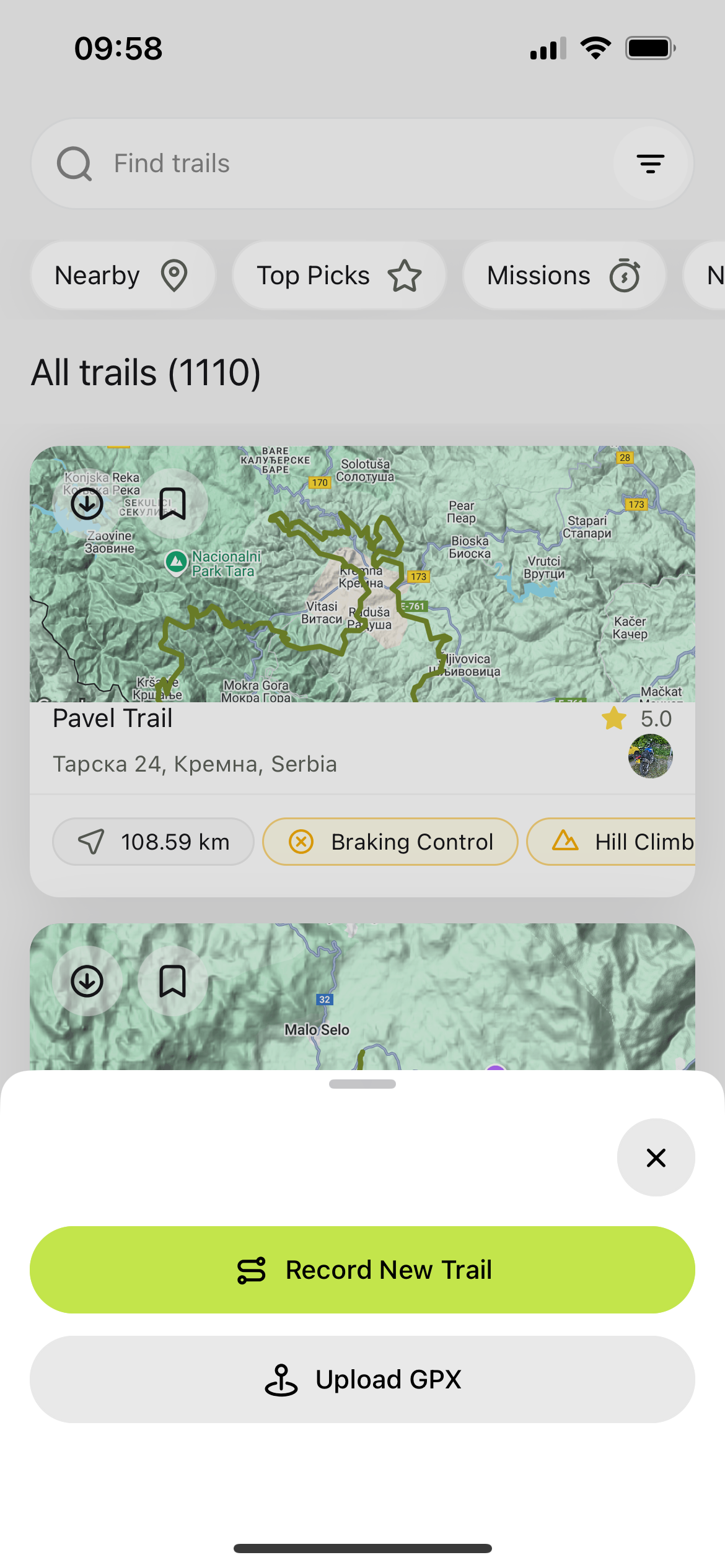 Toque no botão **“+”** para começar a criar uma nova trilha