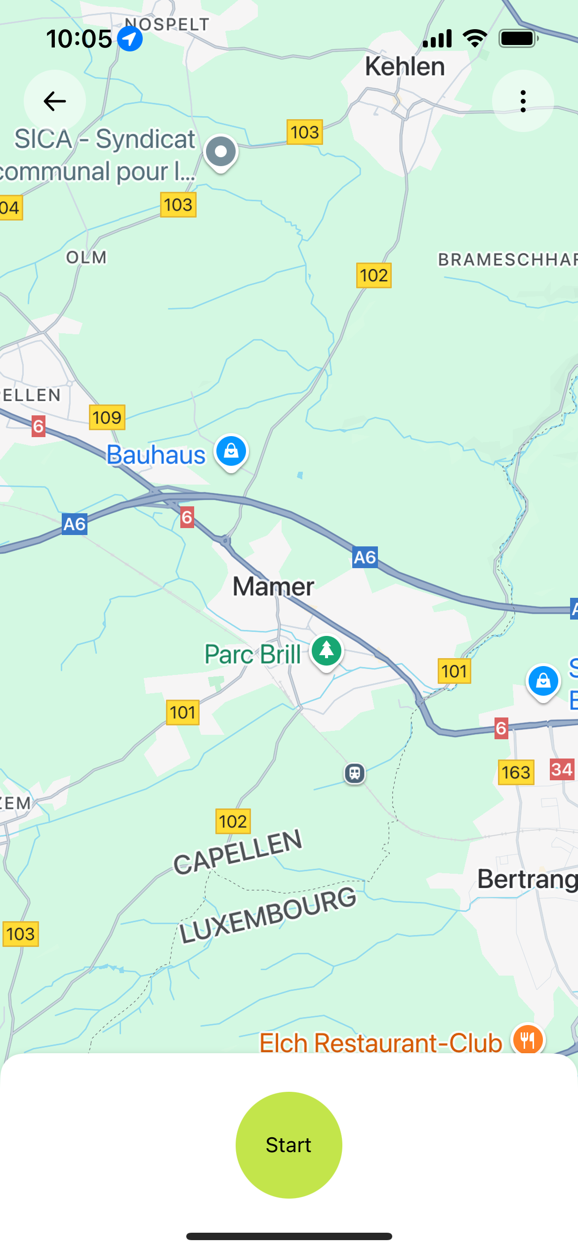 Toque no **botão “Iniciar”** para começar a rastrear sua rota.